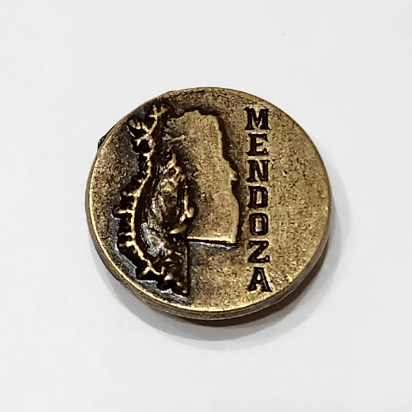Aplique Mapa de Mendoza.Medida 25MM de Diámetro.Perno corto.Se aprieta con cabeza de remache 8/8.El Remache se vende por bolsa de 1000 unidades y no está incluido en el aplique.