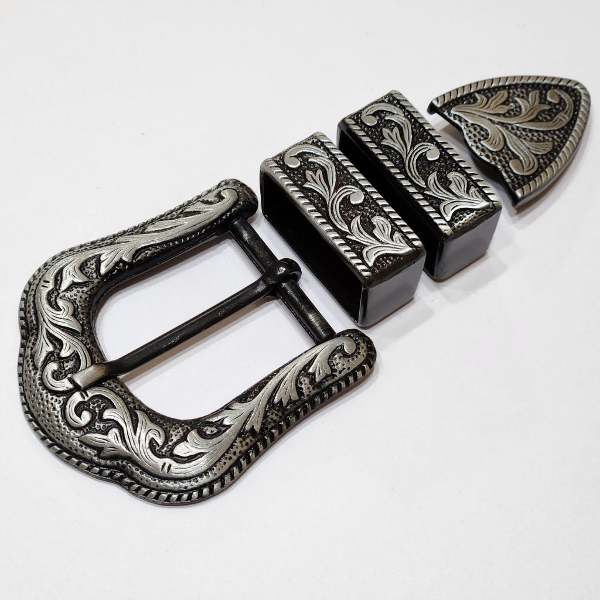 Hebilla de 25mm texana con 2 pasadores y puntera.