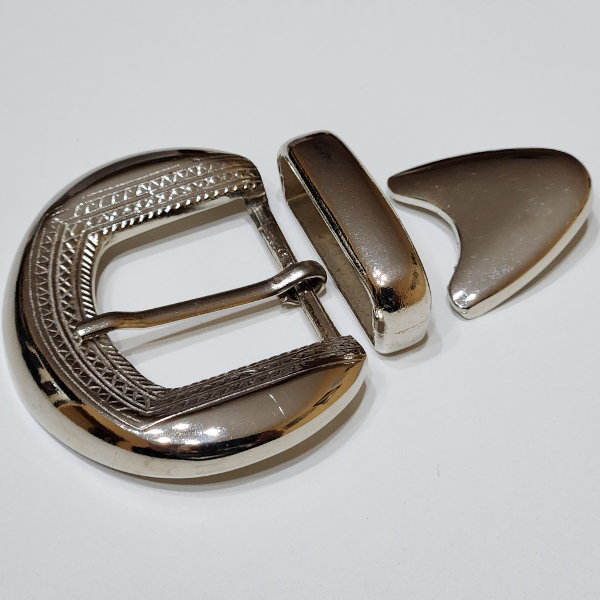 Hebilla Medialuna para cinturon de dama con pasador y puntera lisa.