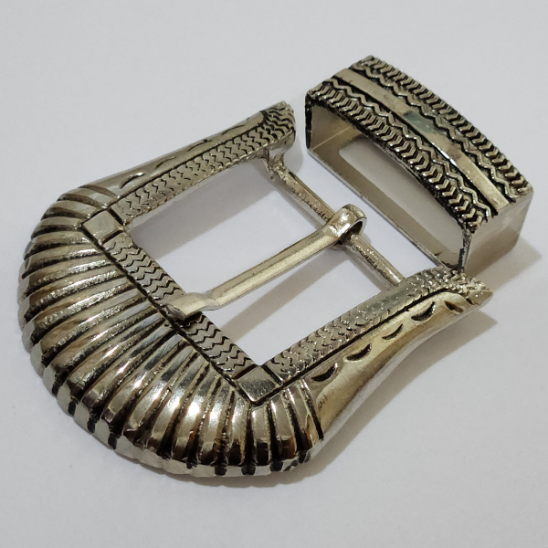Hebilla rayada de 35mm con pasador incaico color niquel y fondo pintado en negro.Medida de la hebilla 6 cm de ancho x 7 cm de alto.