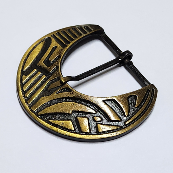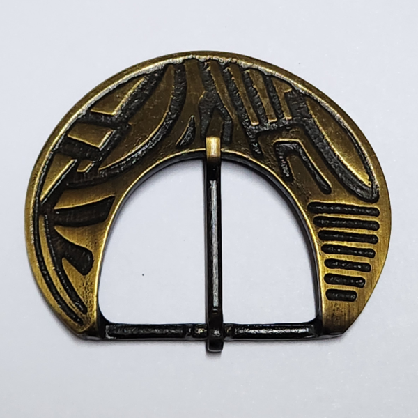 Hebilla de 40mm Medialuna Labrada.Bronce viejo.Medida 7 cm de ancho x 6 cm de alto.