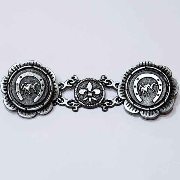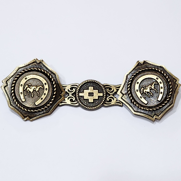 Yunta engarzada herradura.Medida 13 cm de ancho x 4,5 de alto. El cliente recibirá el producto con el aplique que haya elegido pero su base y centro podría variar.